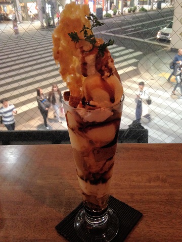 こちらのパフェは,さくさくのクラッカー(?)が載っているのがポイントです。アイスやクリームの甘みと柔らかさに対し,さくさくで特に砂糖もふっていないクラッカーがあることで,味わいと食感にアクセントがつき,飽きの来ない美味しさを楽しめます。結構遅くまでやっており,修習後に行っても余裕があると思うので,気が向いたときにいかがでしょうか?