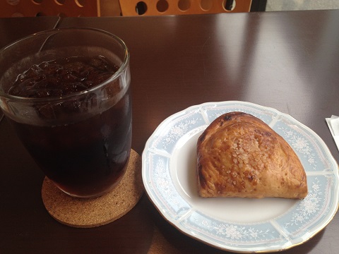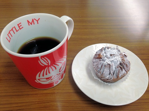一押し商品は焼モンブランというほかでなかなか聞かないものです。モンブランというのですが,上にマロンクリームが巻いてあるアレではなく,写真のように外はさくさくの生地で覆われています。外の香ばしい生地と,中のマロンクリーム(餡といった方が近い食感)が絶妙にマッチしていて,指導担当おすすめというだけあるなあと感心しました。紅茶と一緒に頂くことをお勧めします。